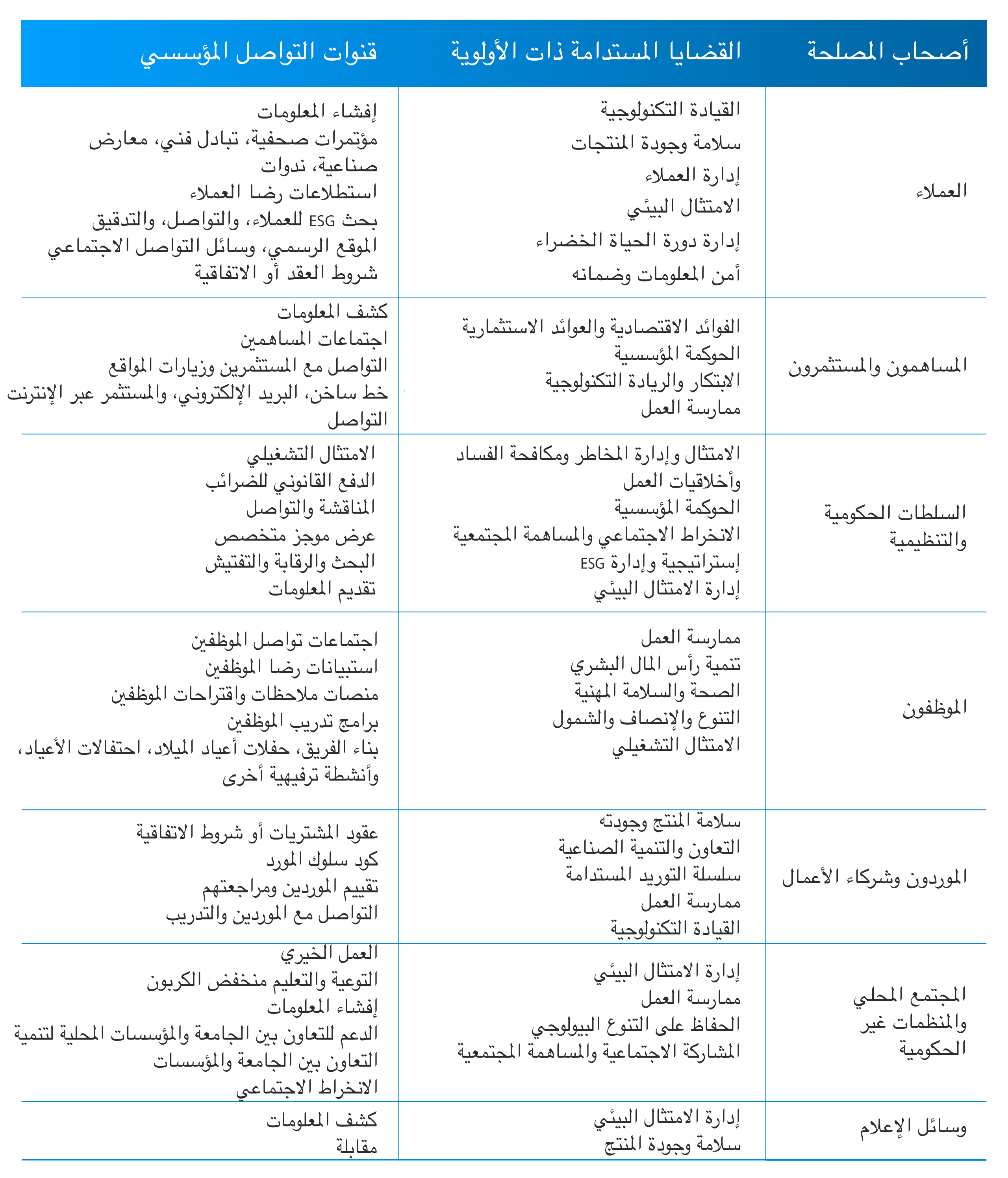 ترينا سولار لا يمكن أن تنفصل عن مساهمة ومشاركة أصحاب المصلحة. نواصل توسيع وتحسين قنوات وتواتر التواصل مع أصحاب المصلحة، ونعمل على تحسين إدارة البيئة والمجتمع والحوكمة الداخلية من خلال تلقي الملاحظات، كما نستجيب لمخاوف جميع أصحاب المصلحة من خلال الإفصاح الخارجي عن المعلومات.