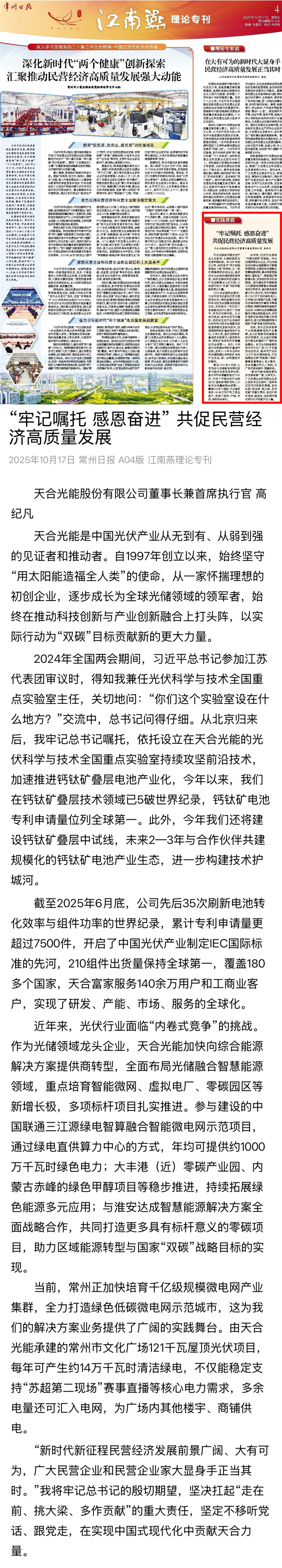 01 常州日报江南燕理论专刊刊登高纪凡署名文章,天合光能加速向光储智慧能源解决方案战略转型