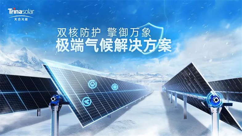 近年的监测数据显示,北美大平原等大型集中式光伏发电项目所在地区,频繁出现直径40毫米以上、末端速度超30米/秒的超级冰雹。传统光伏产品已难以应对这种新气候常态。为了满足冰雹、强风、暴雪等极端气候环境下客户需求,天合光能今年3月份率先推出以至尊N型极御组件为核心的极端气候解决方案。