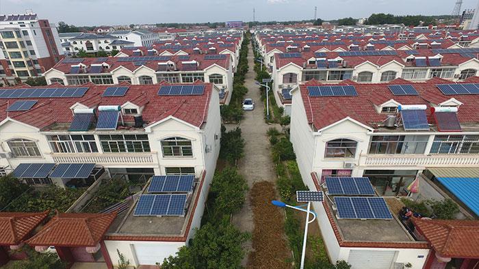Located in the Qingnan Community, Qinghu Town, Donghai County, Lianyungang, this new village installation was completed in early 2014 providing Trina enabled power to 129 families in the community. With a total installed capacity of 381KW, a large part of the self-generated power (80%) is used by the village community and the remaining power is transferred to the grid.. This project marked the start of family-distributed photovoltaic power generation in China. It is the first rural community village with photovoltaic power generation on closely-adjoining roofs.