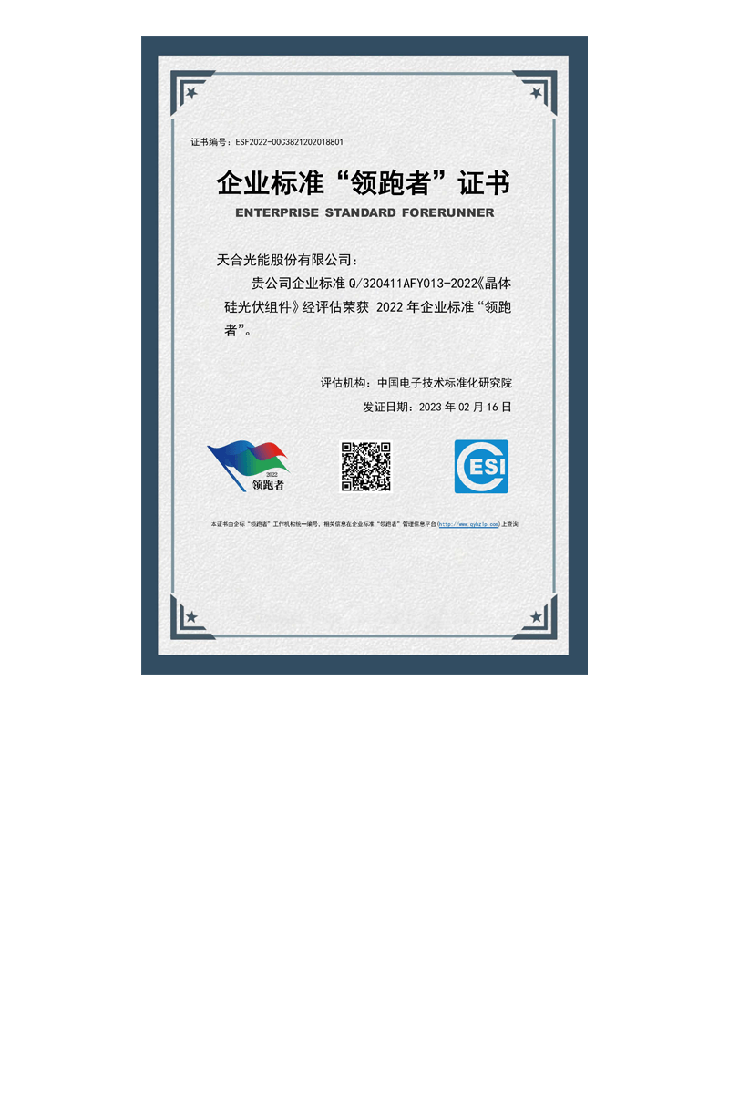L’intégrité et la fiabilité sont la force vitale du développement de l’entreprise, et gagner par la qualité est le secret de Trinasolar pour devenir le premier fabricant mondial de produits photovoltaïques et fournisseur de solutions. Trinasolar s’engage à établir un système de contrôle qualité pour tout le cycle de vie de ses produits et solutions afin d’améliorer de manière globale l’expérience client. Nous disposons d’une excellente équipe de conception, d’un processus d’approvisionnement rigoureux, d’une ligne de production de fabrication intelligente, d’une équipe de construction et de gestion expérimentée, ainsi que d’une capacité efficace et professionnelle de réponse aux demandes des clients. Trinasolar crée l’excellence avec professionnalisme et contribue, par la qualité, au succès de chaque client.