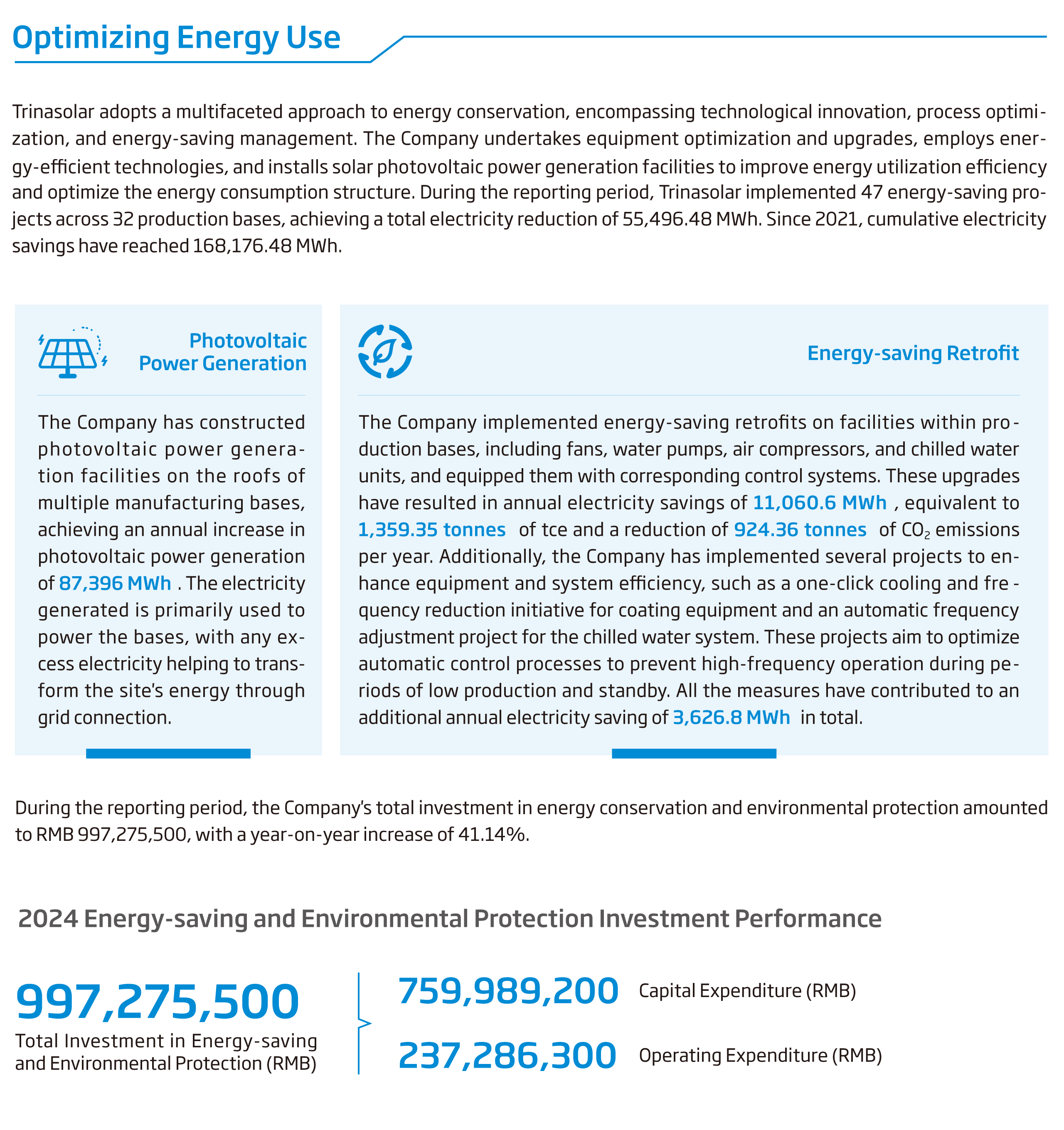 Trina Solar continues to enhance its environmental performance by reducing carbon emissions, increasing the utilization of green electricity, promoting module recycling, and developing “photovoltaic plus ecological” projects.