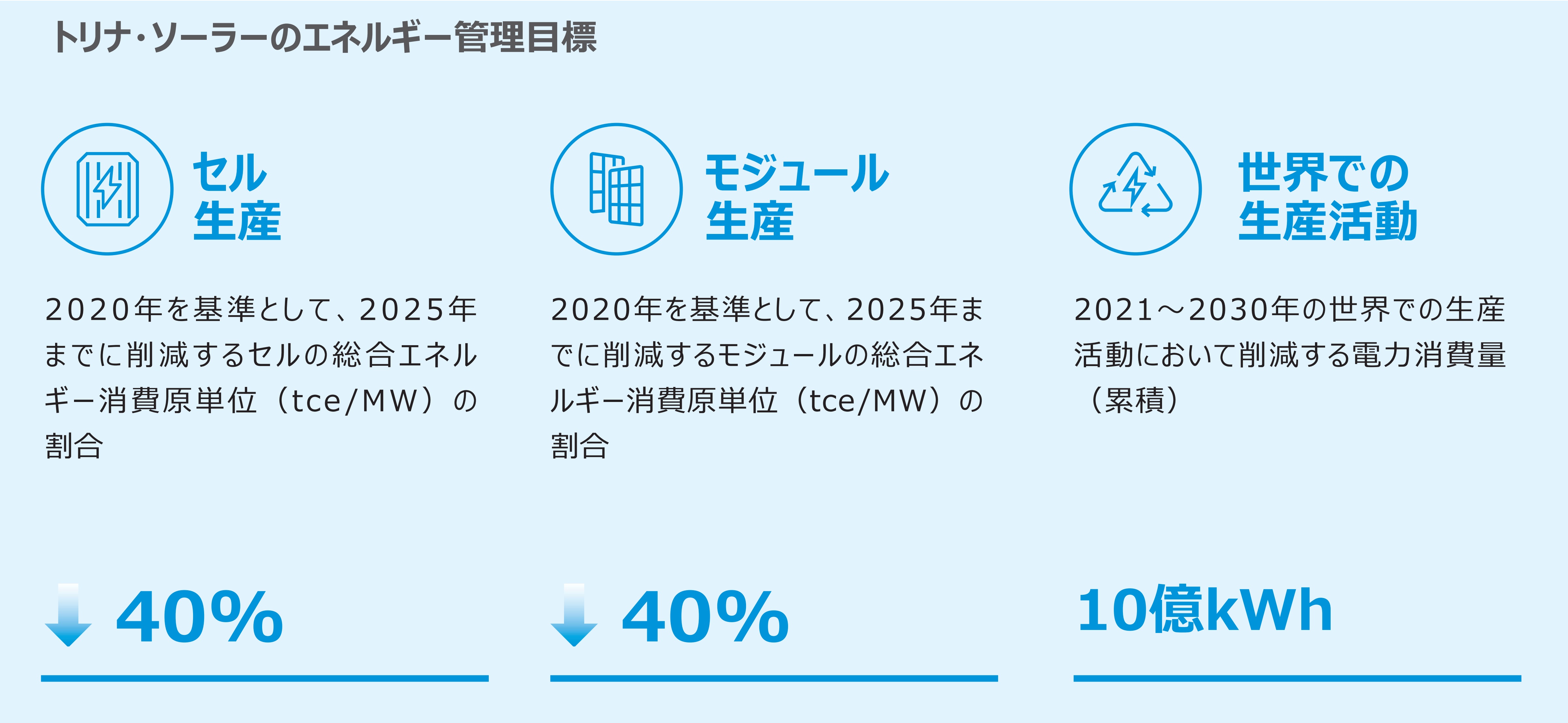 当社は世界の事業活動において、温室効果ガス排出、エネルギー効率、再生可能エネルギー活用、水資源管理に関する明確な目標を策定しています。