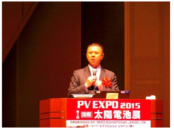 世界最大級の新エネルギー国際見本市「スマートエネルギーWeek 2015」は9つの展示会で形成され、その中の「PV EXPO 2015 第8回 国際 太陽電池展」の基調講演において、当社 会長兼最高経営責任者の高紀凡 (Jifan Gao)が、「各国の描く太陽光発電の未来とその取り組み」というテーマで行われた基調講演に招かれました。 高(Gao)は、「中国における太陽光の発展と国際協調」というテーマで、「競争力に優れた製品容量を誇る世界有数のサプライヤとして国際的ニーズを満たすため、中国の太陽光発電メーカーの役割はかつてないほど重要になった」と指摘。また、「早期にグリッドパリティを実現し、太陽光エネルギーを安価かつ受容可能なものにするには、保護貿易の壁を破り、自由貿易体制の環境を整えることである」 と今後の太陽光市場のあり方について語りました。