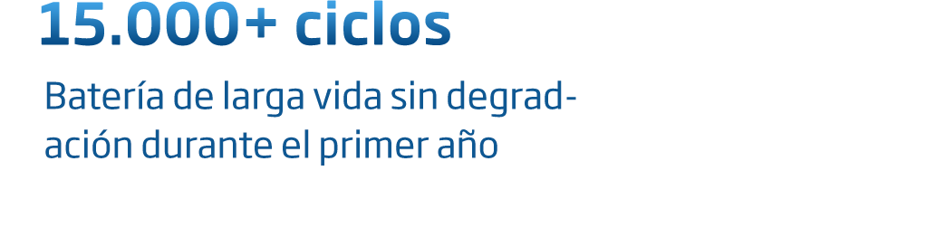 - Ciclo de vida ultra largo, hasta 15.000 ciclos