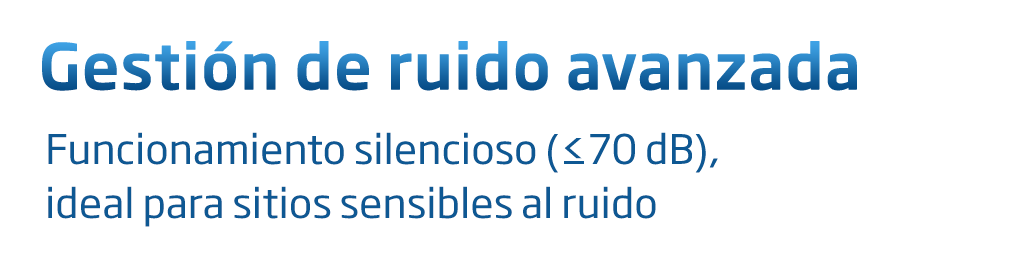 - Funcionamiento silencioso (≤70 dB), ideal para sitios sensibles al ruido