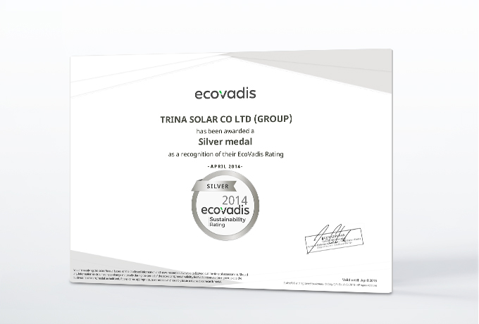 TRINA SOLAR CO LTD (GROUP) EcoVadis Rating Certificate 2014