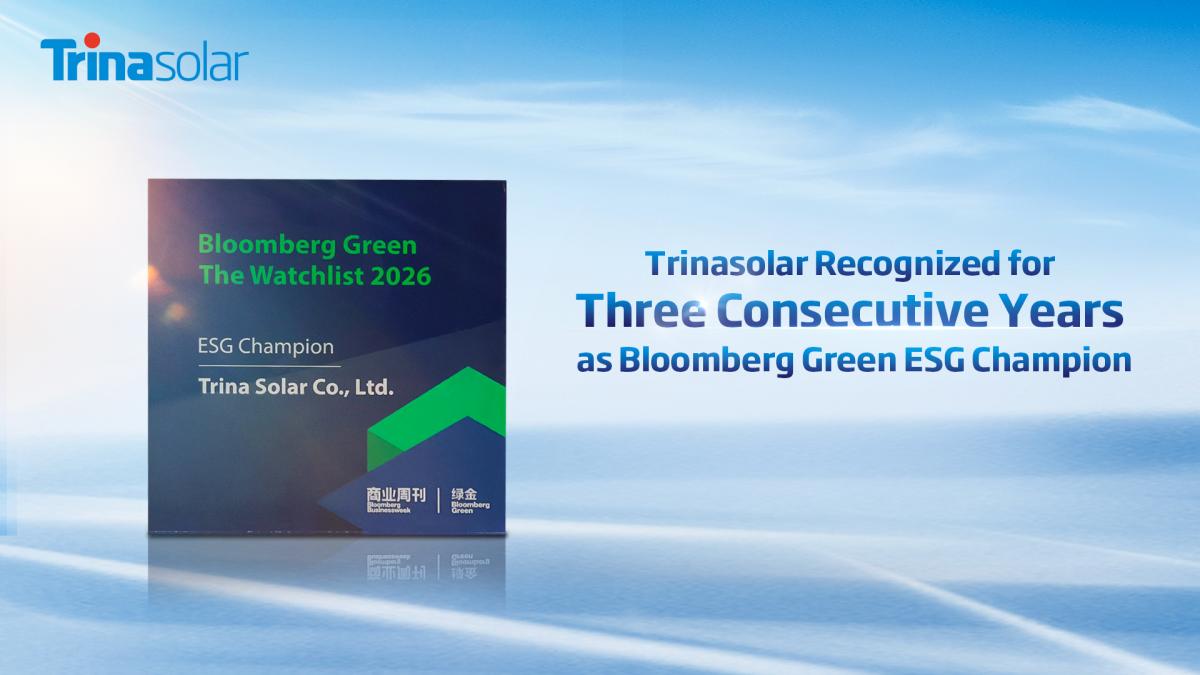 Trinasolar has been named as Bloomberg Green ESG Champion for the third consecutive year for its outstanding performance in this field, following the release of the Bloomberg Green 2026 Watchlist on November 27.