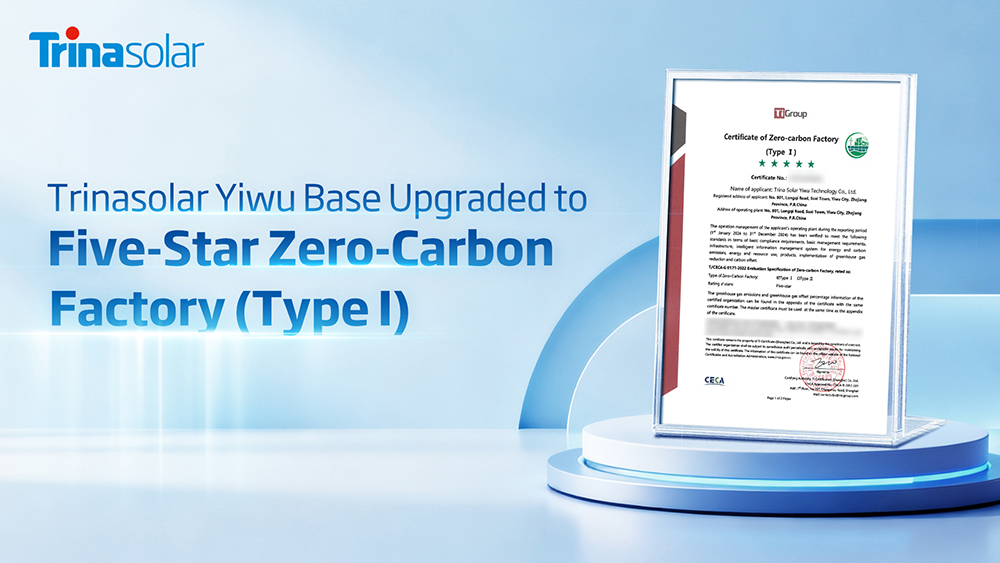 Trinasolar Yiwu Base Upgraded to Five-Star Zero-Carbon Factory (Type I)